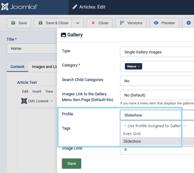 If you are making a menu item to the gallery, then the profile that is assigned to the gallery will be used.