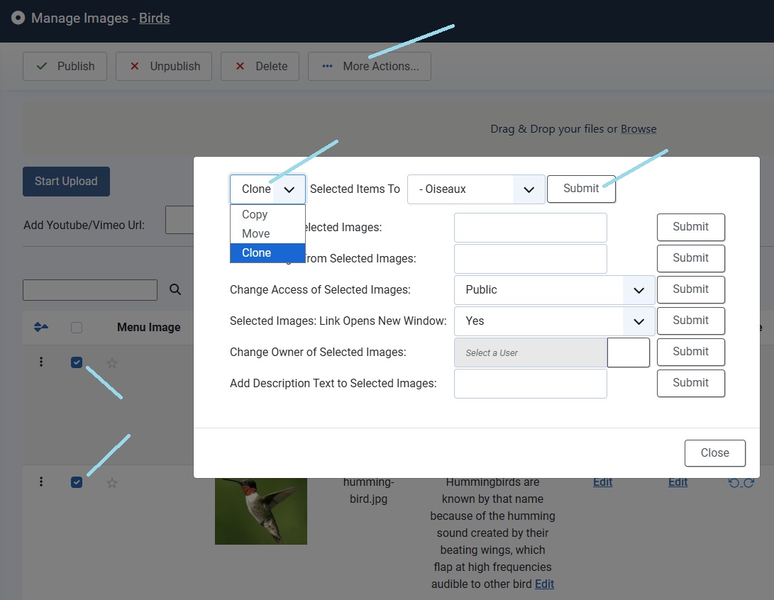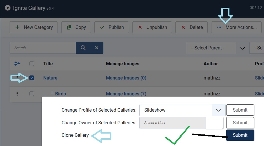 - Cloned Galleries can upload new images, choose no if you want to prevent users uploading images to cloned galleries. This forces users to upload images to the original gallery.