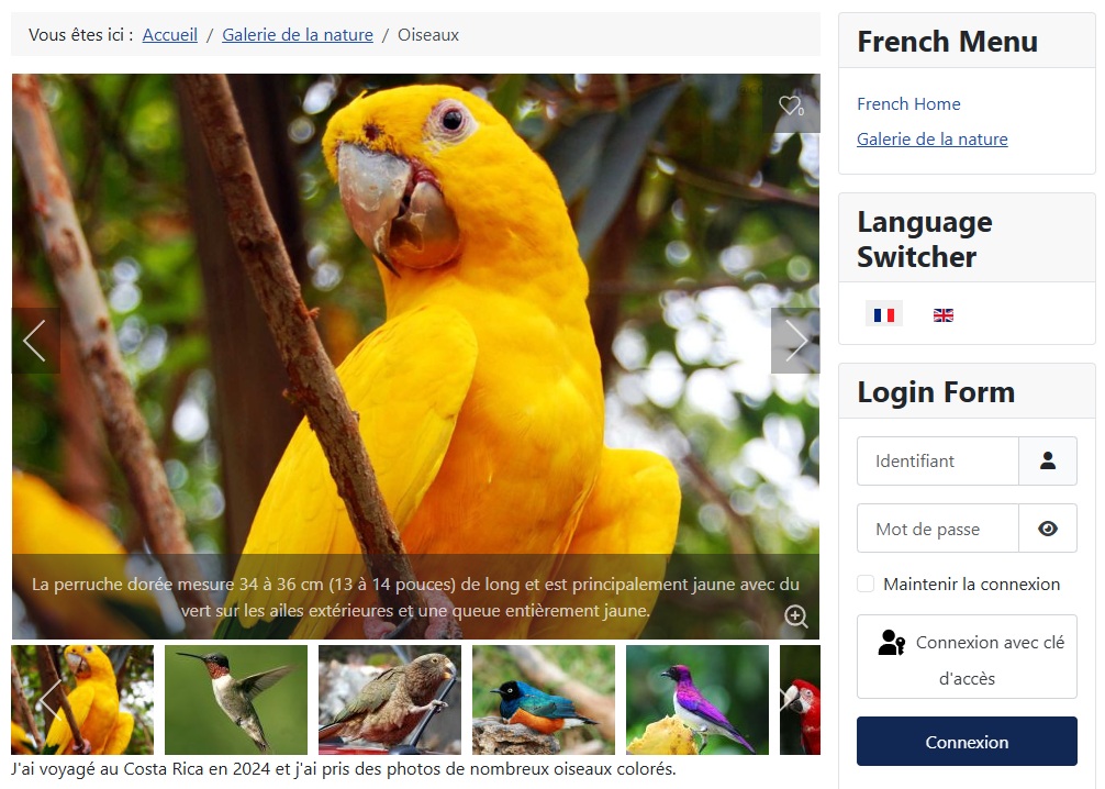 15)View the English gallery menu item in the frontend, and choose the French link in the language switcher module: