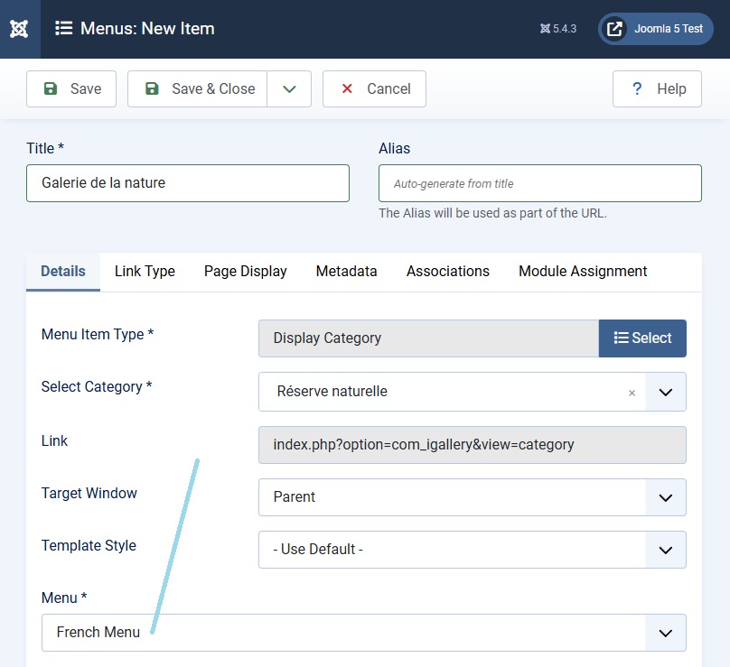 12)Create an French menu item to the French gallery: