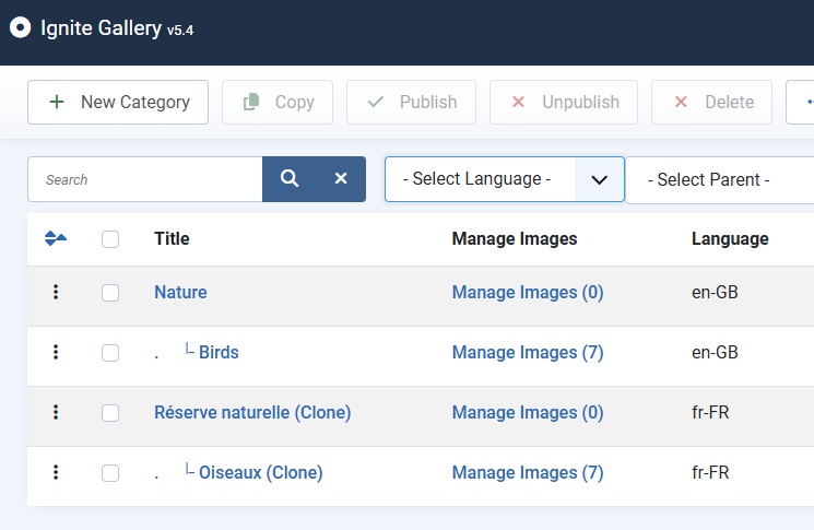 ****Ignite Gallery uses the Joomla Multilingual system*** Firstly, please set up the Joomla multilingual languages/menus/modules. You can see info on how to do this here
